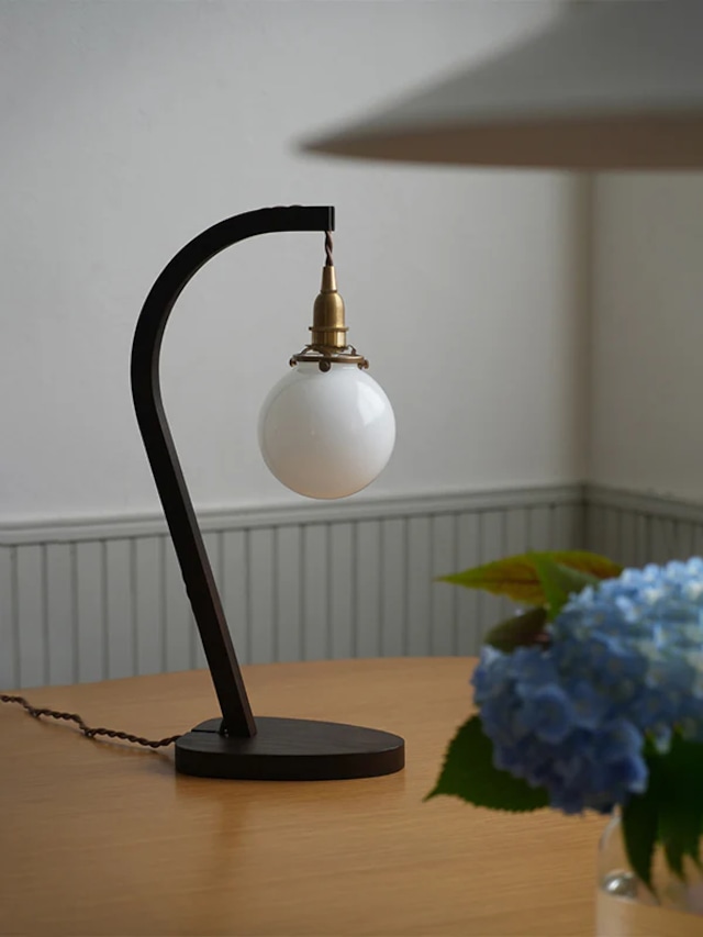 お辞儀をしているようなフォルム、シンプルで美しい木製ランプスタンドです。コーヒーテーブルやチェストの上に置いて間接照明をしてお使い頂いたり、ベットサイドに置いてナイトランプとしてもお使い頂けます。 ※木製のスタンドのみの商品となります。別途、灯具・シェード・電球のご購入が必要となります。 組み合わせるシェードや電球によって印象が変わるので、お好みの組み合わせでご使用ください。 ※本商品は、旧商品「HS2518 バウ ランプスタンド」のウォルナット材から、アッシュ材(ブラウン塗装)に素材変更を行っています。また、灯具コードを固定する方法がコの字ピンから固定ピンに変更されています。 ※天然木を使用し、手作業にて製造を行なっております。木の色味や木目の出方に個体差が生じる可能性がありますが、あらかじめご了承ください。 [品番:HS3433] サイズ:約w200×d140×h465mm 素材:アッシュ材 仕様 ※電球、シェード、ソケットコードは付属しておりません。別途ご購入ください。 ※イメージ画像では「HS2389 中間スイッチ付ソケットコードE17プラグタイプ」を使用しております。