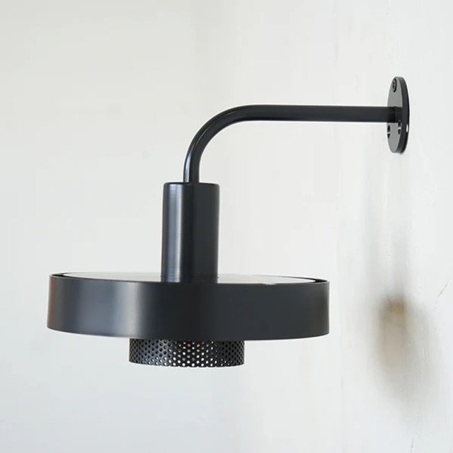 シェード直径約16cm×高さ約16cm×出しろ約20cmの、コンパクトなウォールライトです。電球を覆う部分に穴の空いた鉄の板=パンチングアイアンプレートを使用しているため、適度に光を抜けさせながらも、目眩しさを低減させています。 KT punching lightは金属を用いた物作りを行うKITAWORKS主宰・木多隆志(きたたかし)氏と、AXCIS,INC.が共同開発をして生まれた”KT”シリーズのアイテムです。KITAWORKSの得意とするパンチング加工を用いて、モダンかつ個性的な照明に仕上げられています。 ※シェード・灯具・コードが一体型になった照明です。別途電球のみご用意ください。 [品番:L2205] ・サイズ:約w:160×d200×166 ・サイズ(台座):約直径45mm ・重量:約570g ・素材:鉄、その他 ・付属品:取付用ビス ・適合電球:E17口径のLED電球専用 ・保証期間:お買い上げ日より1年 【設置の際の注意点】 ブラケットライトを購入される際は事前に設置方法をご確認ください。[中間スイッチ付きソケットコード]と組み合わせて使用する商品は、コンセントから電源を取ることができ、DIYでも設置が可能です。 本体に配線が付属している[直接結線仕様]の商品は、電気工事士による工事が必須となります。本体の配線と壁内部の電気配線を結線する工事を行うため、新築の場合は住宅会社か電気工事の担当者様にご相談ください。すでに入居済みもしくはリノベーションの場合は、必ず住まいのお近くの電気工事店等にご依頼いただき有資格者が工事を行なってください。無資格者によるDIYでの工事は故障や事故の可能性があるため絶対におやめください。 また、[直接結線仕様]の商品は壁に穴を開けて設置する必要があります。賃貸住宅にお住まいの場合は原状回復義務等をご確認いただいた上でご検討ください。 【ご案内】 ※E17口径のLED電球専用です。アクシス製の電球のご利用を推奨しております。 ※PSE取得済み ※人感センサー・調光スイッチは対応不可。 ※ホタルスイッチと組み合わせてご利用される場合、正常に点灯しない場合がございます。 ※屋外での使用や風呂場など高温多湿の場所での使用はお控え下さい。 ※防水・防雨・防湿等の機能はありません。