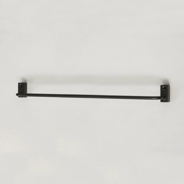 洗面所やお手洗い、キッチンなどの壁面に設置して、タオルやツール類を掛けられるタオルバーです。バーの片側を壁に取り付けるデザインなので、タオルをさっと掛けたり外したりする事ができます。幅は約22.3cmとコンパクトなので、お手洗いなど狭いスペースにも設置可能。フェイスタオルを縦半分に折って掛けるのにぴったりのサイズです。 「シングルタオルバー アイアン」は、マットな黒色塗装のアイアン製。白やグレー系統の内装と合わせればシンプル・都会的な雰囲気に、木やコンクリートなどの異素材と合わせればヴィンテージライクで無骨な雰囲気に仕上がります。 品番:HS3049 サイズ:約w223×d45×h34mm 素材:鉄 付属品:木ネジ付 VOLシリーズについて 真っ直ぐなバーや、キュービックなパーツ。それぞれ異なるVOLUME(体積)の組み合わせがユーモラスなハウスパーツシリーズです。個人住宅の洗面所・お手洗い・キッチンはもちろん、事務所や店舗など魅力的な空間づくりが必要な場面にもおすすめです。 ※鉄に黒色の塗装を施しています。無塗装の鉄よりさびにくく鉄独特のにおいも抑えられていますが、使用する中で傷が付いたり、水気に晒される事で経年変化が進んで、塗装の剥げやサビが起こる可能性もございます。