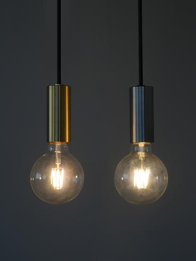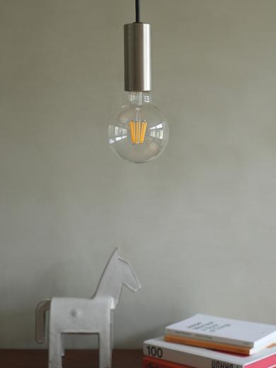 重厚な存在感の裸電球ペンダントライトです。シェードは使わずに電球を直接取り付けて使うので、電球のデザインが際立ちます。