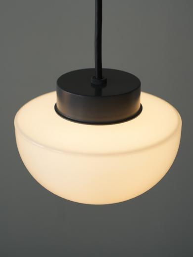 シェード部分は乳白ガラス製で、電球からの光を和らげて周辺に広げる効果があります。