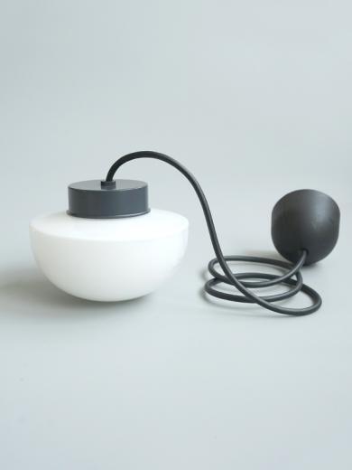 国内工場にて熟練の職人が手作業で製造を行い、 厚みのある乳白ガラスの正確な成形や、スチール部分のヘラ絞り、焼付塗装などを丁寧に仕上げています。