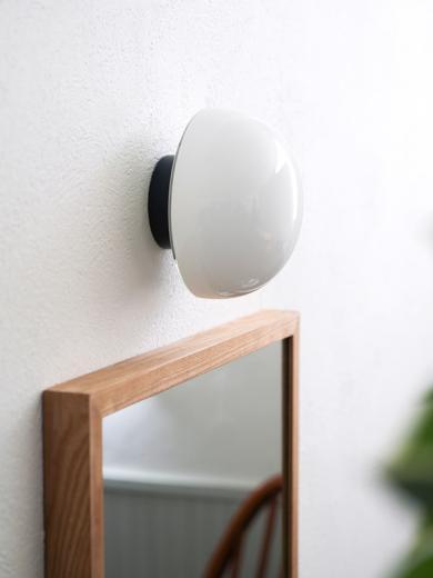 シェード部分は乳白ガラス製で、電球からの光を和らげて周辺に広げる効果があります。