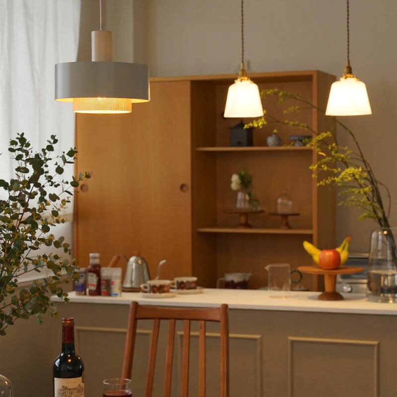 直径約19cmのミディアムサイズのシェードと、コードを組み合わせたペンダントライト。全体がシンプルなオフホワイトカラーで仕上げられていて、どんなインテリアとも調和します。