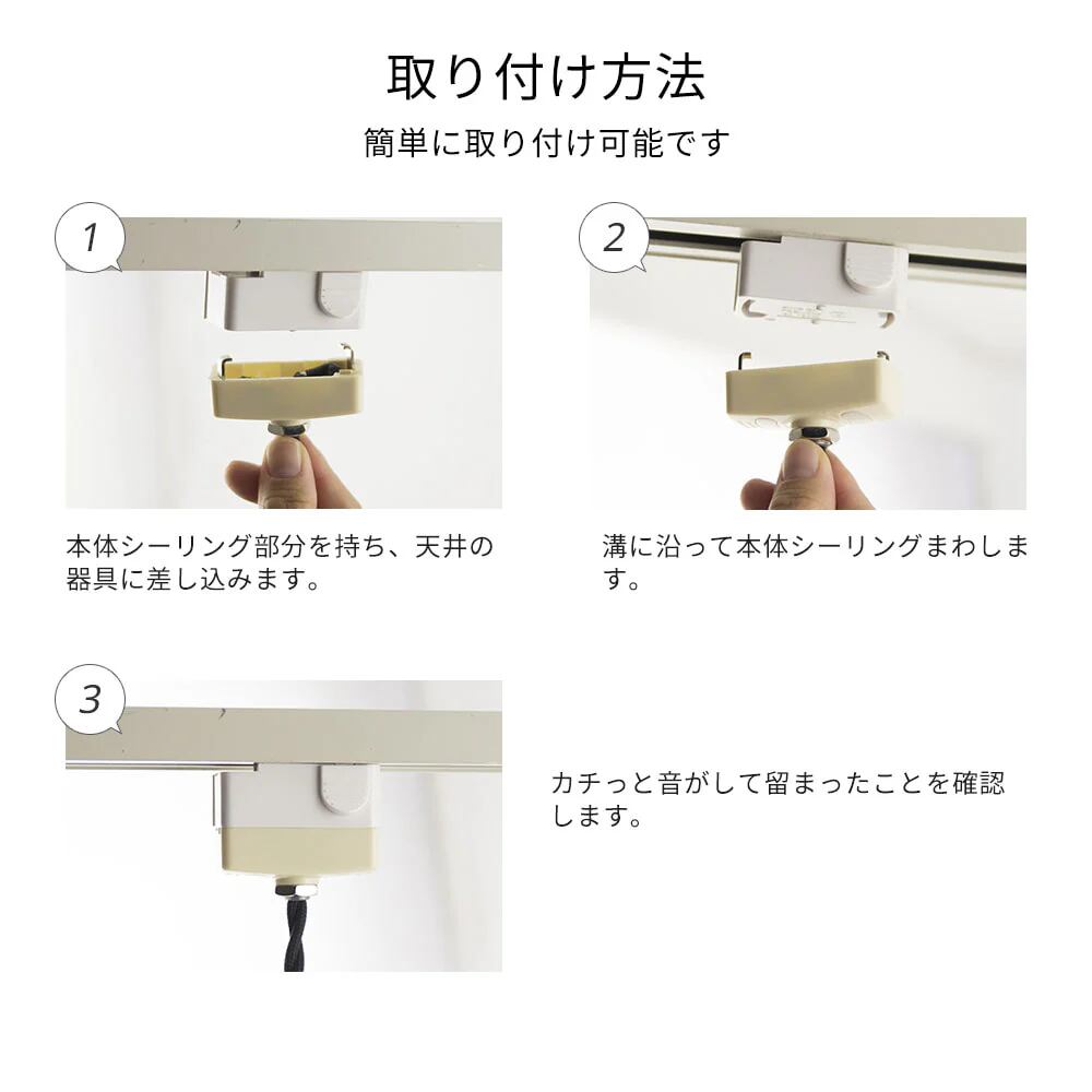 ※引っ掛けシーリングタイプとなりますので、ダクトレールには直接設置ができません。ダクトレールへの設置をご検討の場合は「ダクトレールプラグ」も合わせてお買い求めください。