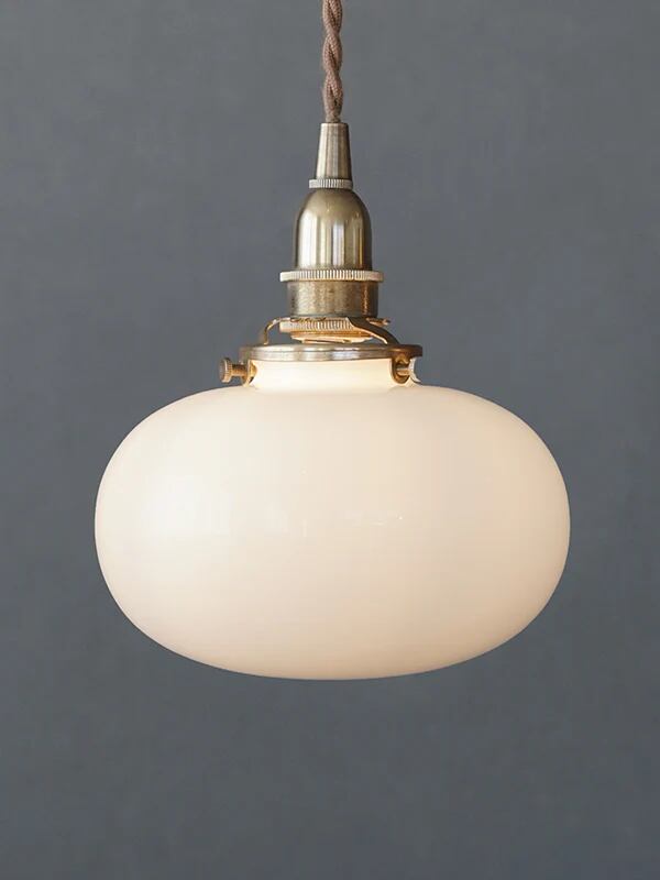乳白色のホワイトガラスは電球の光をほどよく透過して、品のある優しい雰囲気になります。昼間消灯している時も、まるでオブジェのような存在感があるのが特徴です。