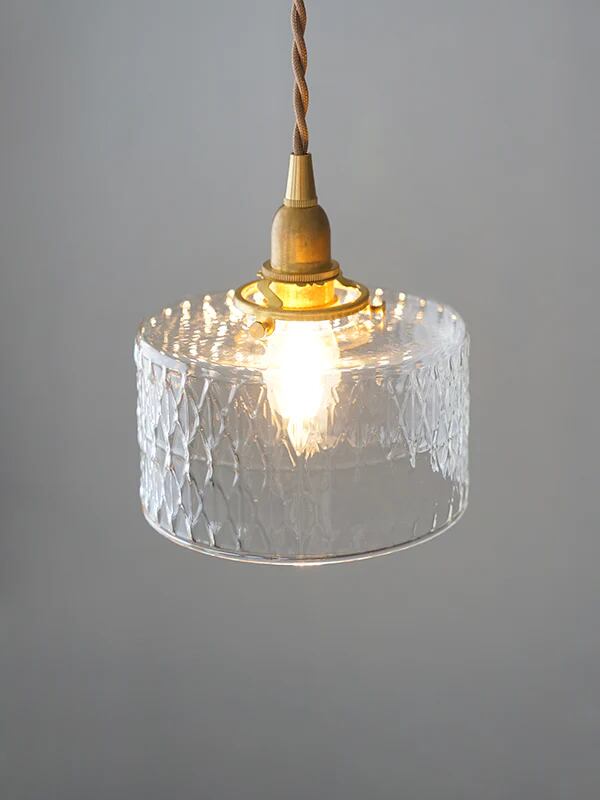 ダイヤカットの加工が光を反射し、キラキラと輝くガラスシェードです。ガラスシェードは点灯すると部屋全体に明かりが広がるため、昼間消灯している時でも自然光を反射して空間に抜け感をプラスしてくれます。インテリアのトータルイメージを邪魔せず、どんな部屋にも馴染むのが特徴です。