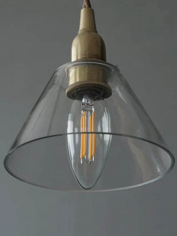 シェードと灯具には適合する組み合わせがあり、首のあるシェードには3点留め灯具を、フラットタイプのシェードには挟み込み灯具を合わせます。「ペンダント灯具 E17用(挟み込み用)」の場合は挟み込みタイプに使用可能となります。