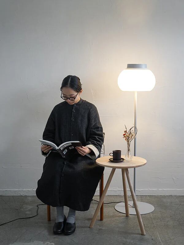 上下がオープンになったシェードは光が上下に抜けて、天井や手元を照らします。また、乳白ガラスは光を半透過して拡げるため、空間全体がアンビエントに明るくなります。