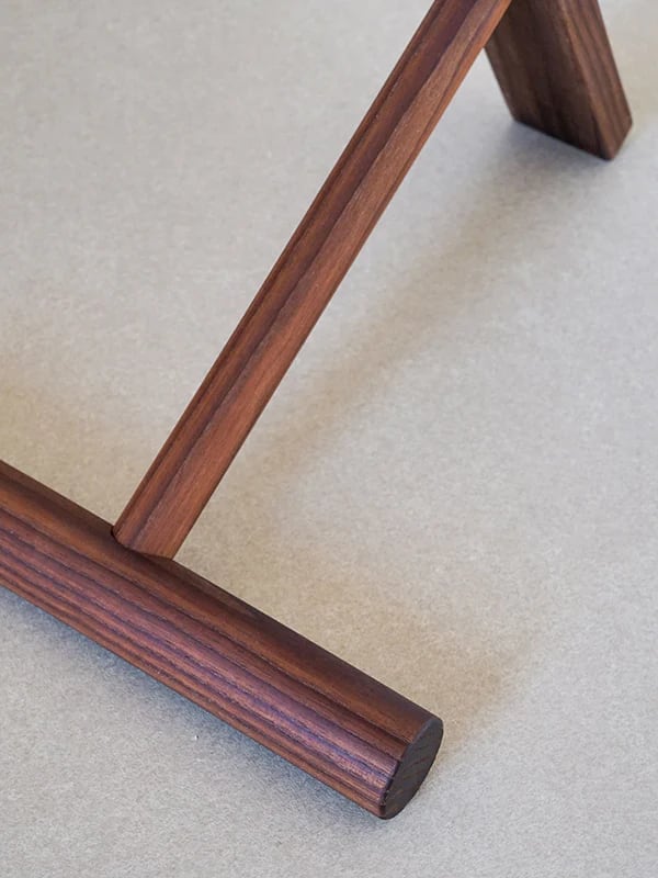 アーム部分のまっすぐなシルエットと、脚部分の丸みを帯びたフォルムのバランスがユニークな表情を見せます。