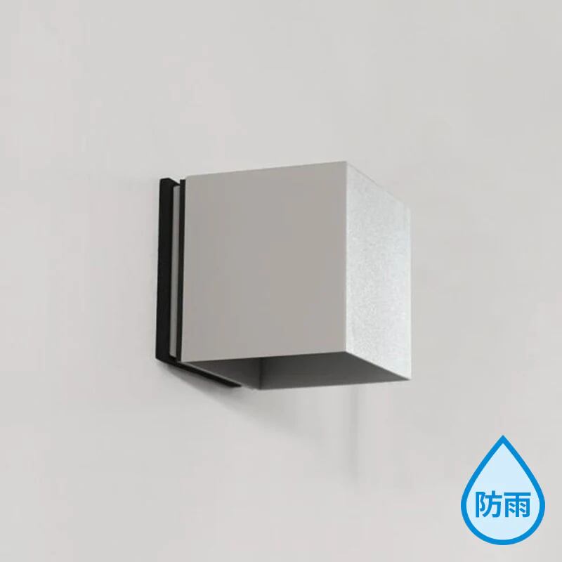 コンパクトなサイズ感や質感にこだわった外見は、従来のエントランスライトにはない柔和な雰囲気を持っています。直線だけで構成された立方体フォルムは、小ぶりでミニマルな印象を与え、シンプル・モダンな外観の建物にぴったりです。電球の上半分が覆われているので、光は下方向に広がります。