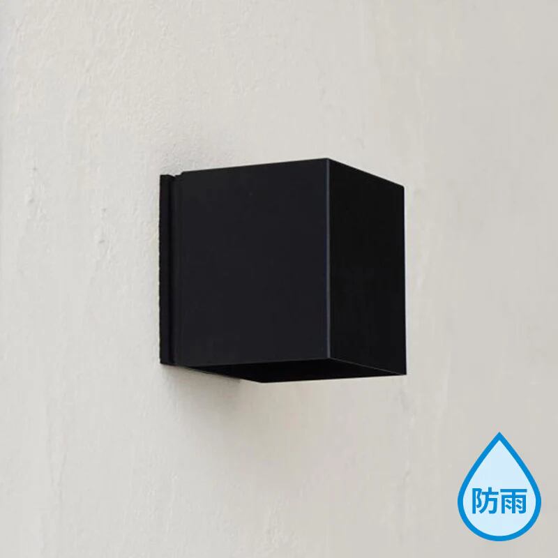 コンパクトなサイズ感や質感にこだわった外見は、従来のエントランスライトにはない柔和な雰囲気を持っています。直線だけで構成された立方体フォルムは、小ぶりでミニマルな印象を与え、シンプル・モダンな外観の建物にぴったりです。電球の上半分が覆われているので、光は下方向に広がります。