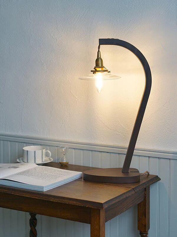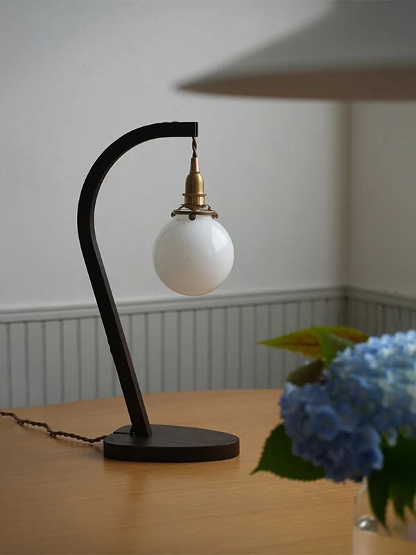 お辞儀をしているようなフォルム、シンプルで美しい木製ランプスタンドです。コーヒーテーブルやチェストの上に置いて間接照明をしてお使い頂いたり、ベットサイドに置いてナイトランプとしてもお使い頂けます。