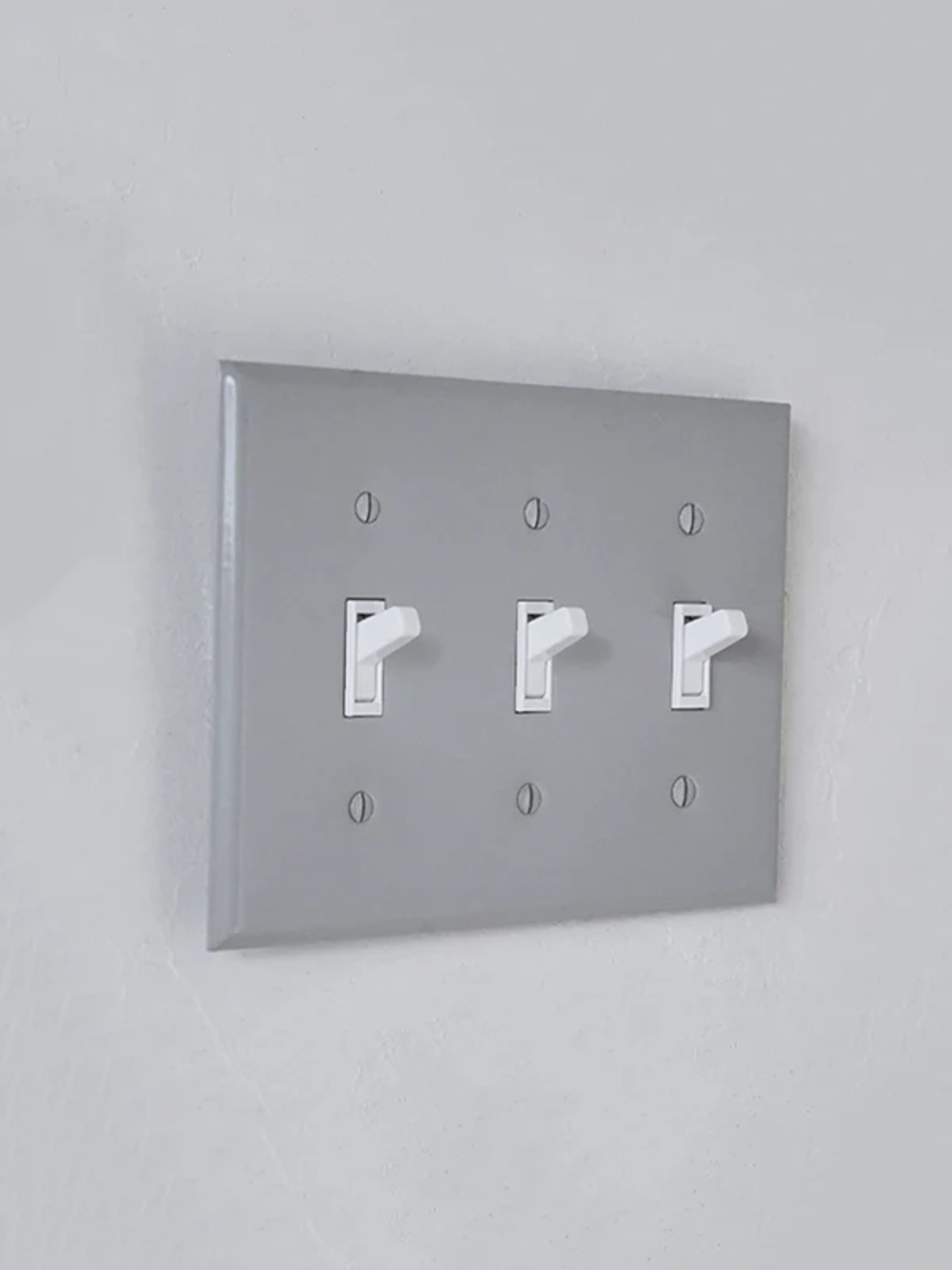 カチッという小気味の良い音とともに明かりが灯る、ミニマルで工業的な雰囲気のアメリカンスイッチ。そのアメリカンスイッチ専用の「スイッチプレート」です。ミディアムグレーのスチールプレートは、シンプルなインテリアからヴィンテージ感あるお部屋まで様々な内装に馴染みます。割れにくく丈夫な素材なので、長い期間劣化せずにお使いいただけます。