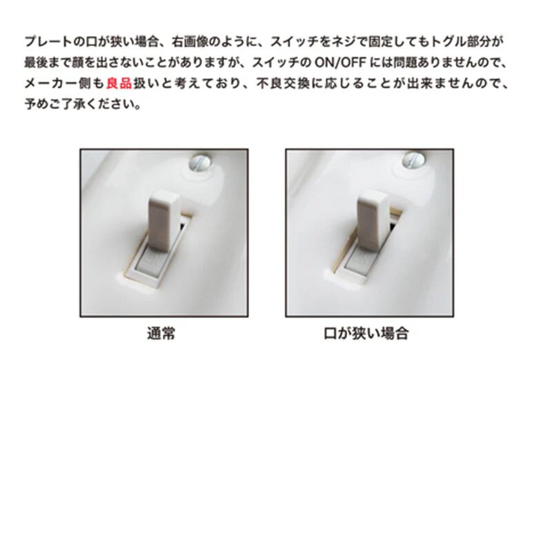 ・アメリカンスイッチは、アメリカンスイッチプレートと組み合わせてご利用ください。日本製のスイッチやプレートとは組み合わせる事ができかねますのでご注意ください。