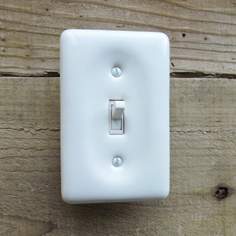 カチッという小気味の良い音とともに明かりが灯る、ミニマルで工業的な雰囲気のアメリカンスイッチ。そのアメリカンスイッチ専用の「スイッチプレート」です。清潔感たっぷりの白磁は、なだらかに凹凸のある表面が穏やかな雰囲気。お部屋にはもちろん、洗面所やバスルームなどの水周りにもおすすめの素材です。