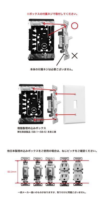 アメリカ製コンセントプレートを別途お求めください。日本製のコンセントプレートとは組み合わせ不可となりますのでご注意ください。