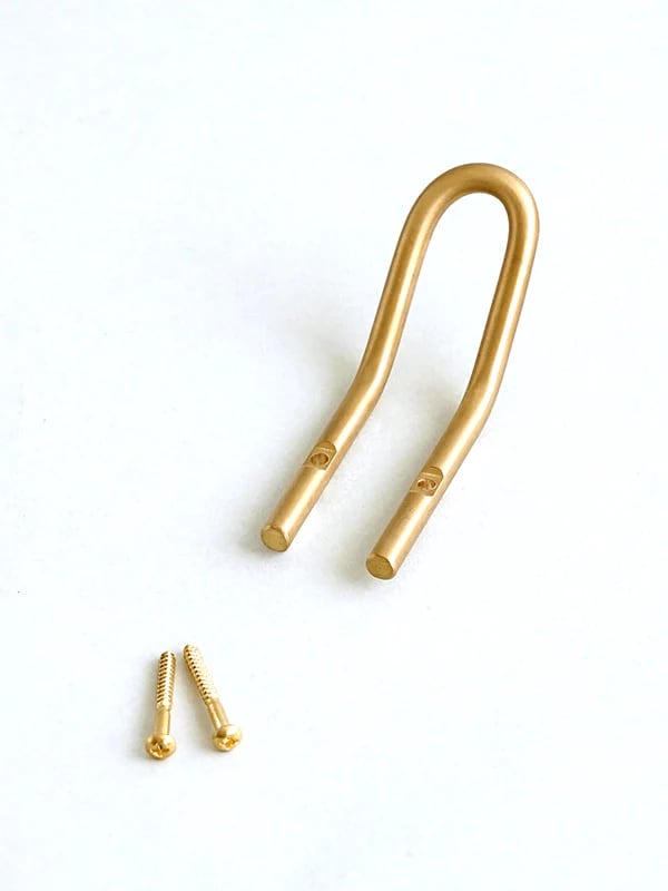 デンマーク語で「清潔」という意味を持つ「 ren (レン) 」。シンプルさと機能美を兼ね備えた真鍮製ハウスパーツです。「ren ブラスUフック」は、壁にビスで取り付けるU字型フック。ピコっと壁から立ち上がるフックは、U字型なので洋服を掛けても生地を突きません。玄関やリビング、寝室、お手洗いなど色々な場所で活躍します。