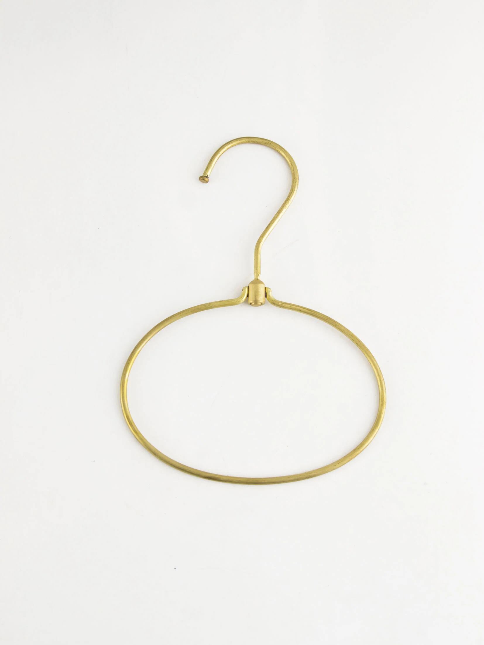 真鍮のワイヤーを曲げて作られた、シンプルなハンガーフックです。わっかのようにワイヤーを曲げて作ったハンガーは、タオルホルダーとしてはもちろん、マフラーやストールをディスプレイ感覚で見せながら収納することもできます。アンティークのような雰囲気のある真鍮素材は、シンプルでありながらも存在感があり、オブジェのような存在感があります。