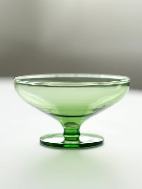 「メム デザートグラス」は、澄んだクリアガラス製のデザートグラス。背が低く安定して使うことができ、スタッキングできるので収納時もコンパクト。デザート・アイス・果物など、スペシャルなメニューを盛り付けるのにぴったりなアイテムです。