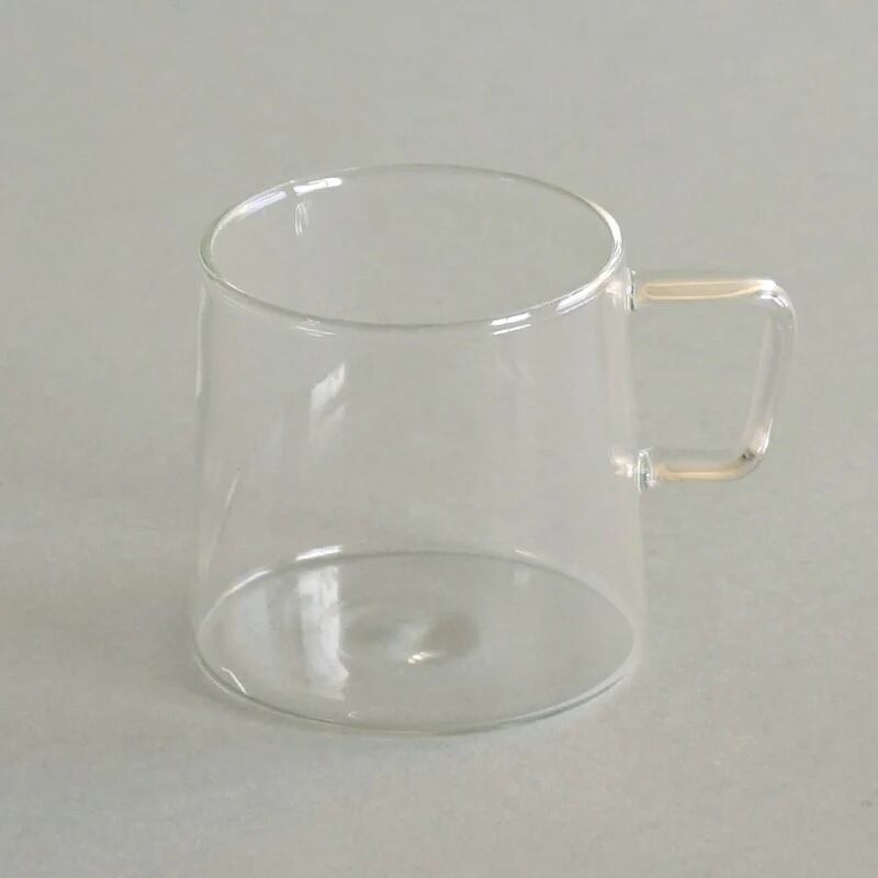 「スコン グラスマグ スクエア」は持ち手付きのガラス製カップ。容量は約260mlと、コーヒーやお茶を楽しむのにちょうど良いサイズ感です。薄すぎず厚すぎない約2mmのガラスは、絶妙な口当たりの良さを持っています。