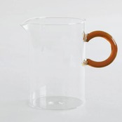 指の入れやすい持ち手と、飲み物をそそぎやすい注ぎ口のガラス製ジャグです。コーヒーサーバーとして使ったり、お茶やハーブティーをサーブしておいたり、耐熱ガラス製だから冷たいものも熱いものも入れられます。容量は約720mlと、コーヒーカップ約4杯分相当。