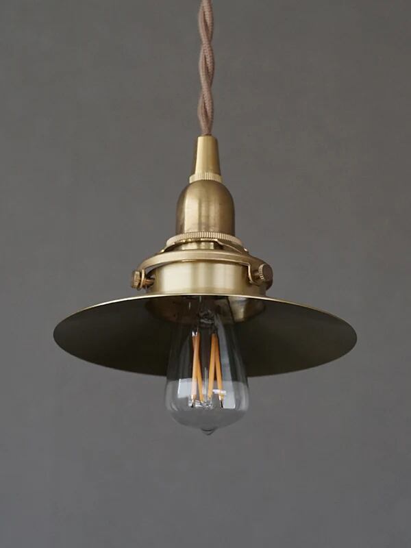 シンプルで小ぶりな形状、金属の質感が潔いミニサイズシェードです。シェードが電球を覆わないタイプなので、光が全方向に広がります。
