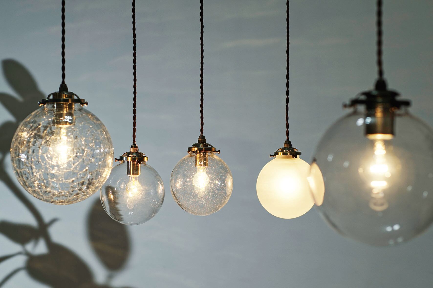 シャボン玉のようなまあるいフォルムにガラスの豊かな表情をプラスしたペンダントライト。