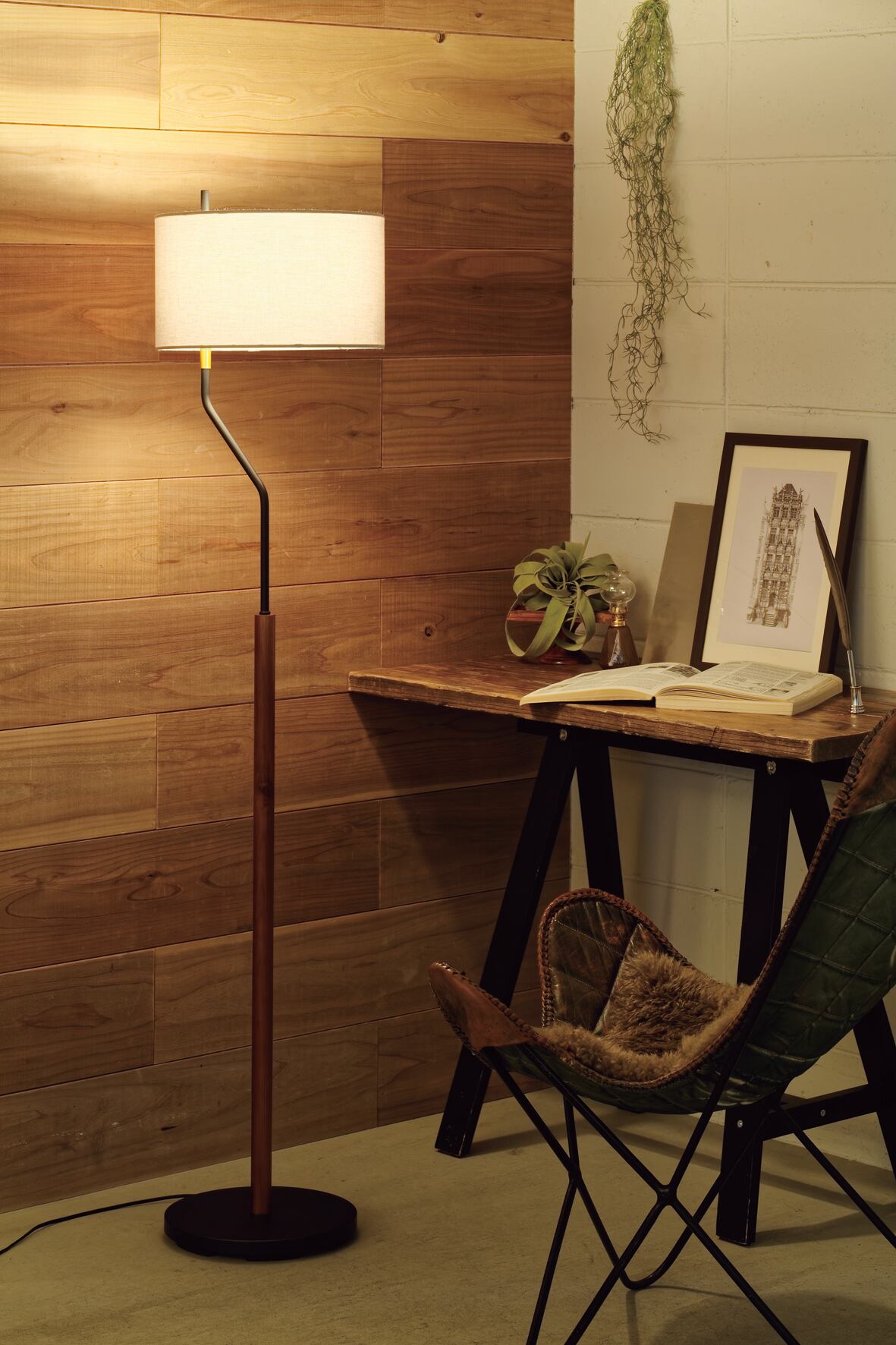 緩急のついたアームや回転するセードなど、シンプルなデザインに個性を添えたモダンなフロアライト。