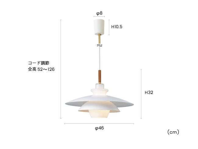 吊るす長さは全高52-126cmの間で調節ができ、余ったコードはシーリングカップの中にすっきりと収納することができます。