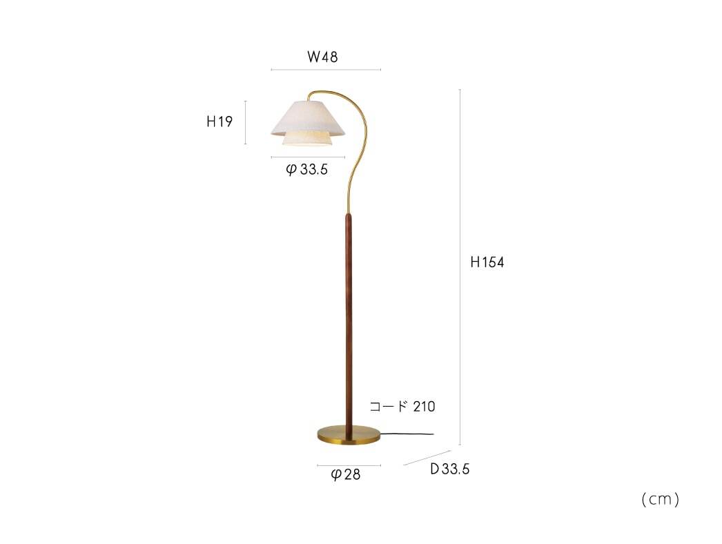 レイヤードされたファブリックセードと緩やかな弧を描く支柱がエレガントな印象のフロアライト。
